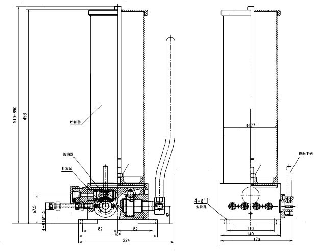 3、贮油桶内油位下降至下位时应及时加注,不得再扳动手柄以便空气进入管路影响润滑效果。