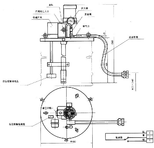 6、本泵设有低位报警装置,报警后应及时地向油筒内充填润滑脂。 |