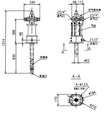 3、使用2#油脂或高稠度润滑油时,油桶内必须配用压油板(本公司另有供货)。