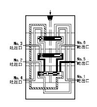 7、流入的润滑剂推动活塞A 向右运动、右腔的润滑剂压向NO.6吐出口,经外部配管送向润滑点。当活塞A移动到至右极限时返回到初始1状态,继续重复上述动作。
