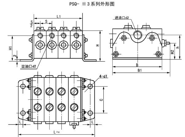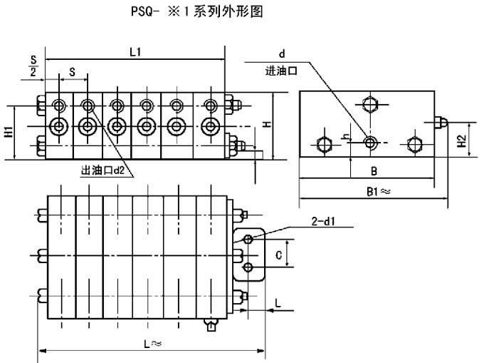 2、如某些润滑点需要的润滑脂量大于表列数值,可将给油器任意组合(见附图)。使供油量成倍增加。